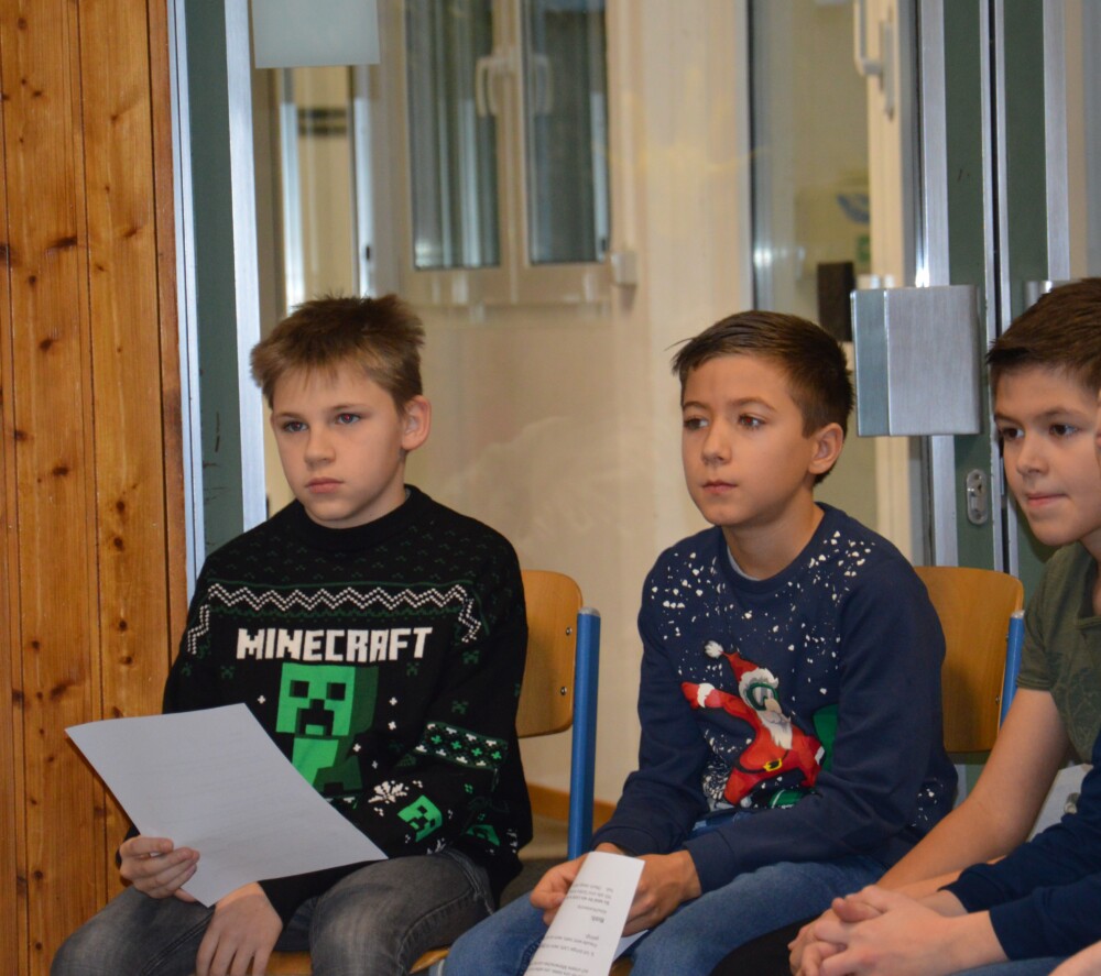 Ein herzliches Dankeschön an Ulrike Glaser, die als Religionslehrerin sehr schöne Beiträge mit den einzelnen Klassen vorbereitet hatte, sowie an Elisabeth Göttinger, deren musikalische Beiträge sowohl gesanglicher als auch instrumentaler Art – mit dem „Weihnachtsensemble“ – immer eine Freude sind.