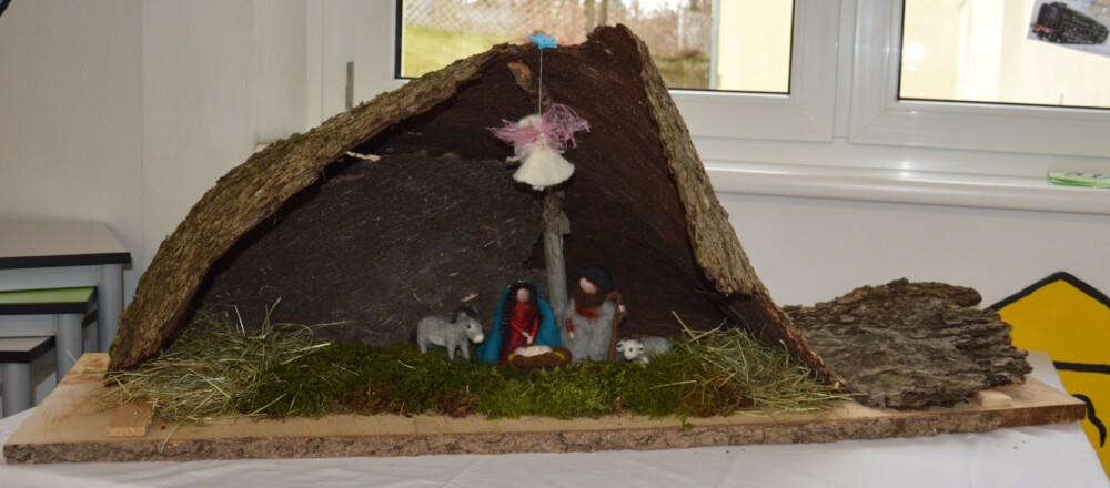 Heuer gibt es zudem eine wunderschöne, im Religionsunterricht der 2K gemeinsam mit Frau Glaser gestaltete, Naturkrippe.