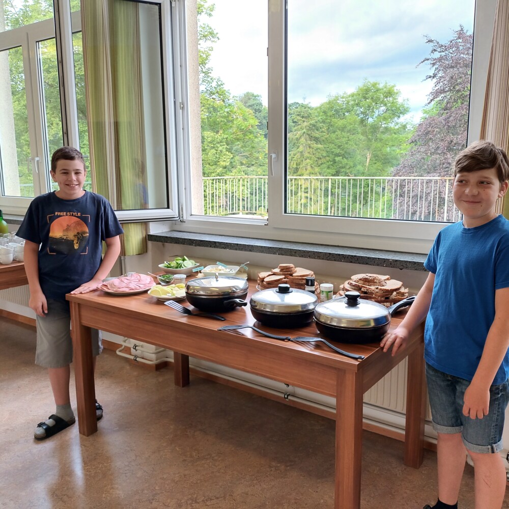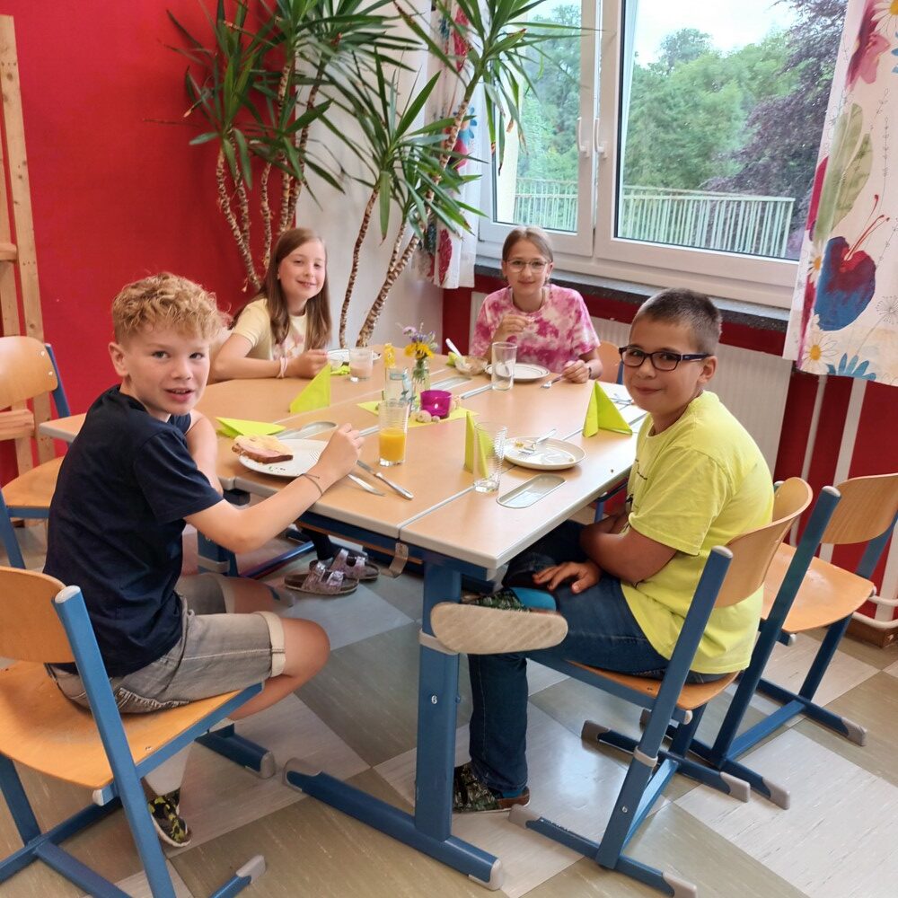 Von Eierspeis‘ über naturtrüben Apfelsaft bis hin zur Milch von heimischen Kühen und selbstgebackenen süßen Leckereien gab es alles, was zu einem herzhaften Frühstück dazugehört. Der Gruppenraum wurde dazu außerdem besonders schön gedeckt.