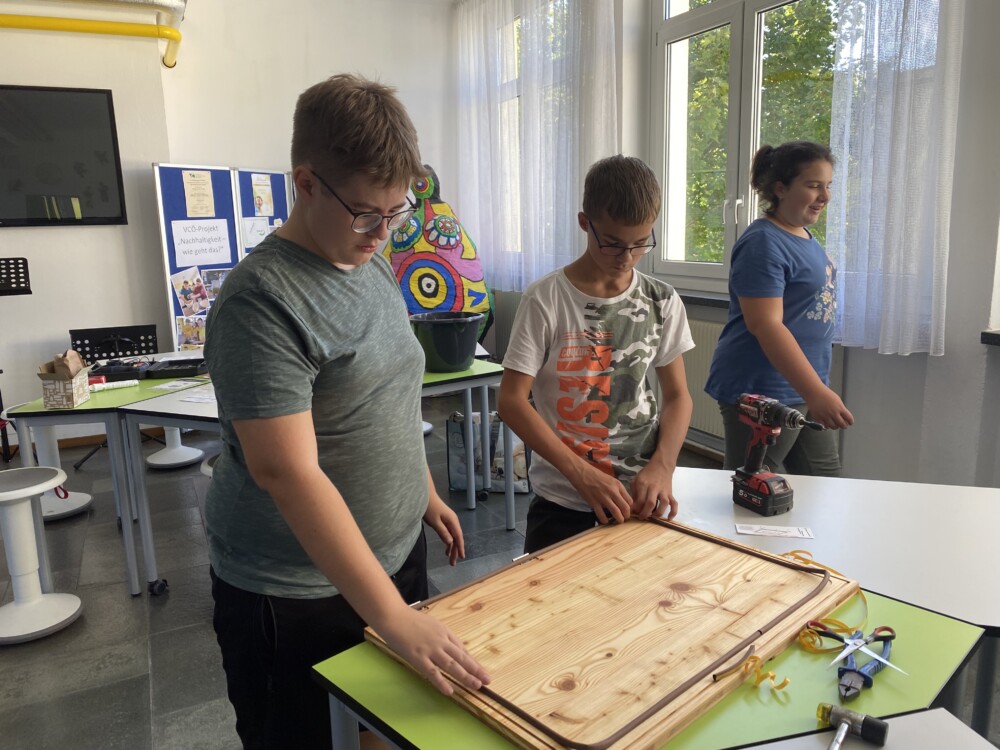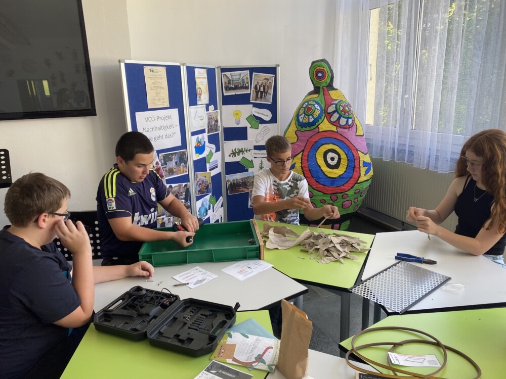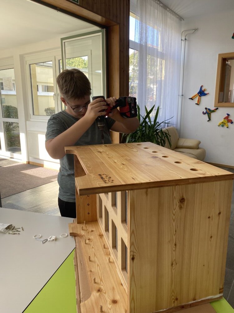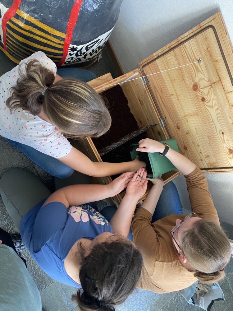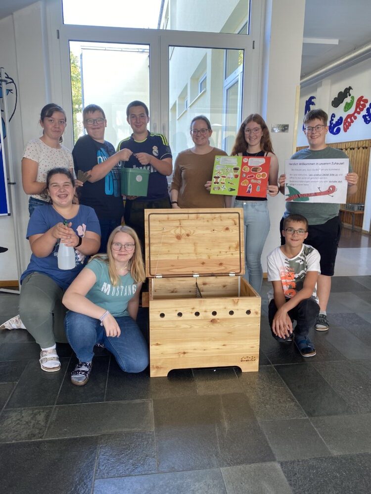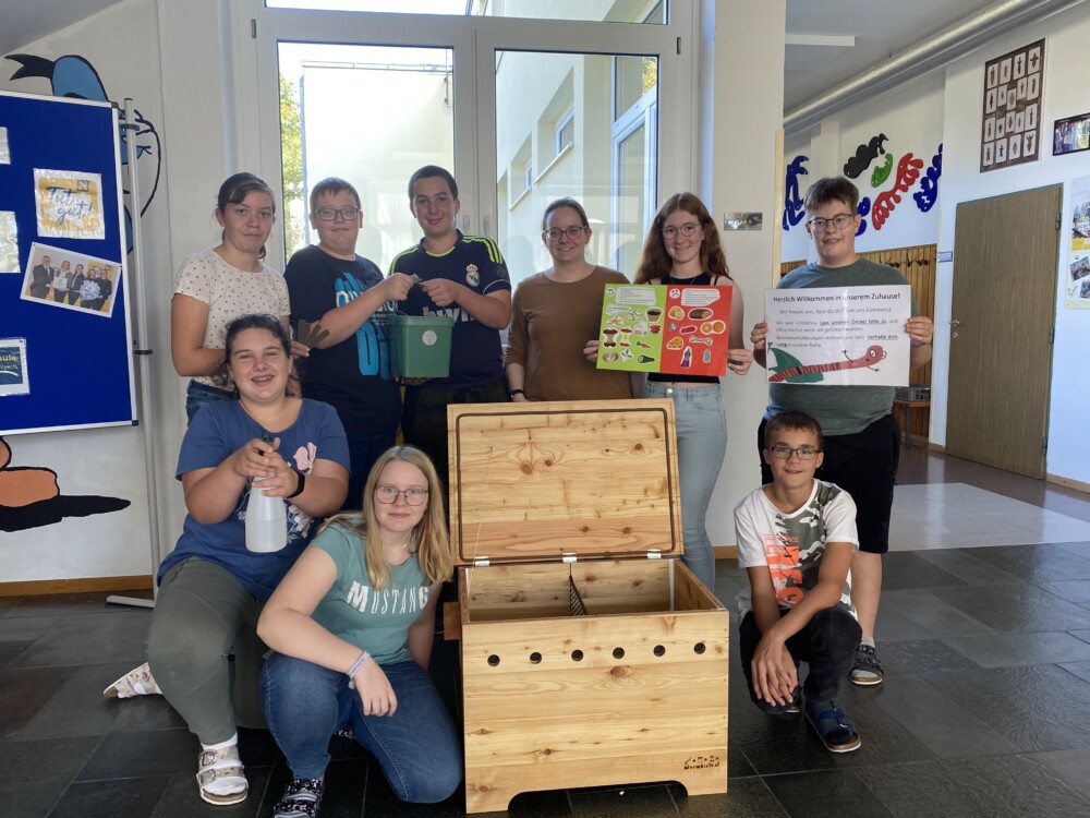 Am Freitag, 29.09.2023 sind rund 500 Kompostwürmer in einer Wurmkiste in die Mittelschule eingezogen. Die Kiste wurde sorgfältig durch die 3K zusammengebaut und ihre Bewohner genau begutachtet. Nach anfänglichen Berührungsängsten waren die Schülerinnen und Schüler Feuer und Flamme für unsere neuen „Haustiere“.