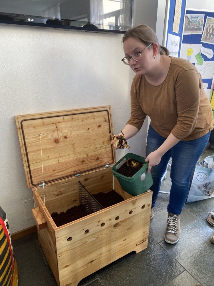 Der wertvolle Wurmhumus (und Wurmtee) wird für den schuleigenen Garten verwendet.