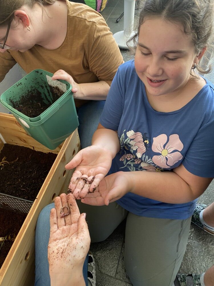Im Rahmen des MINT-Unterrichts wird in den folgenden Wochen noch einiges klassenübergreifend dazu erarbeitet – z.B. Gestaltung von Einmachgläser zum Sammeln des Wurmfutters, Pflege der Wurmkiste, Mitbewohner, usw.