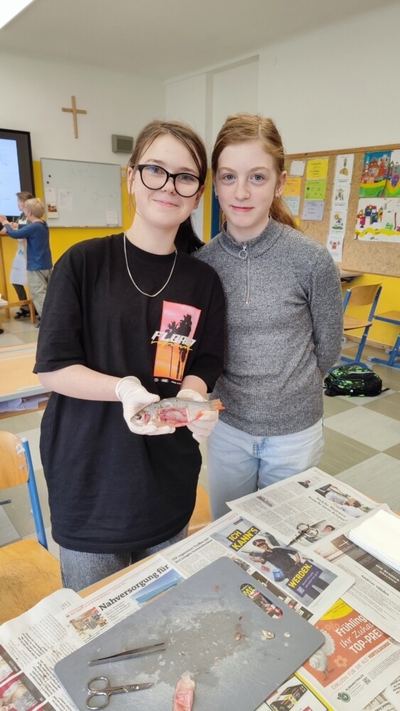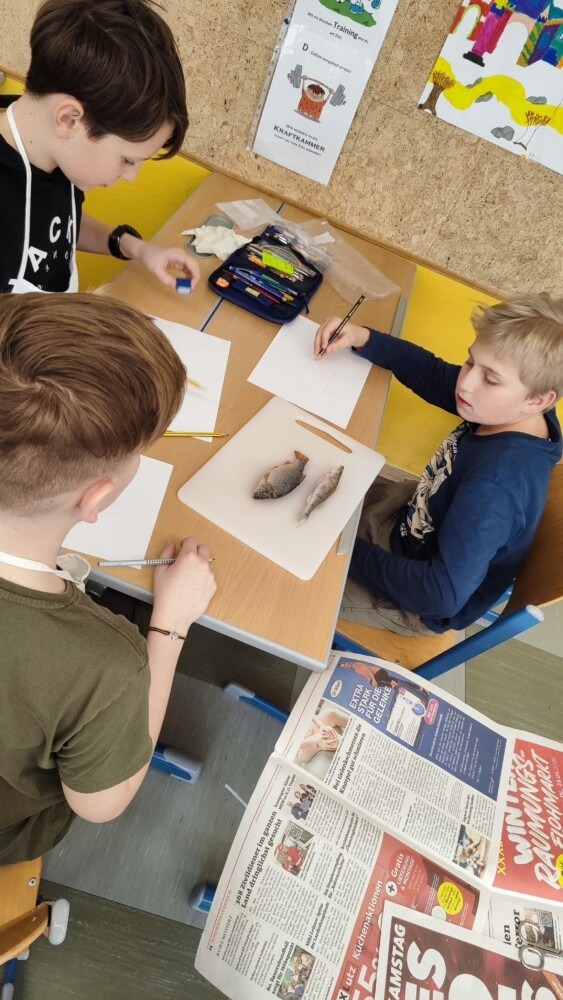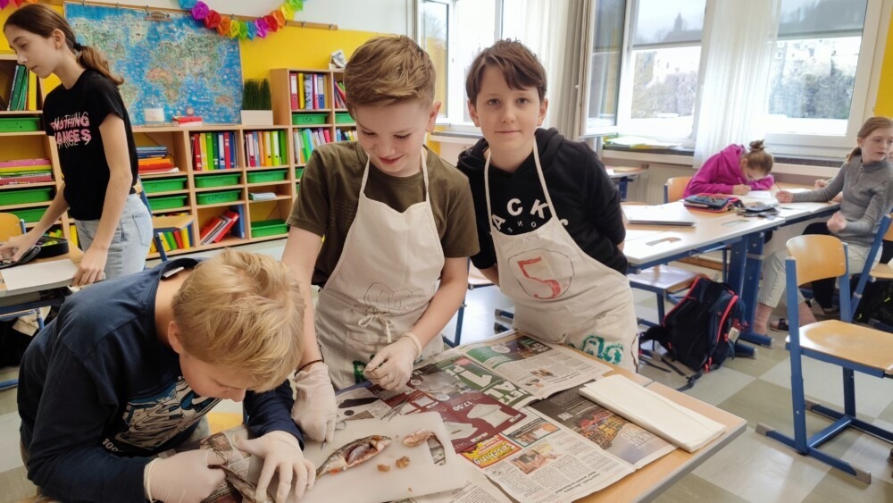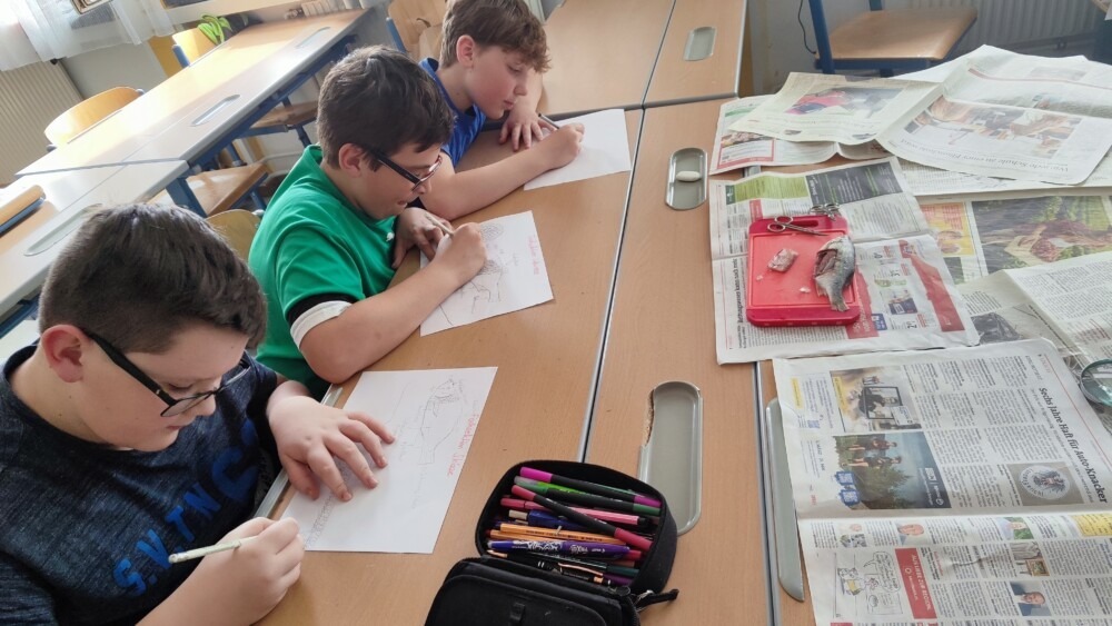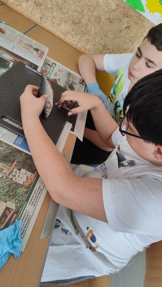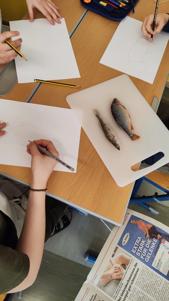 Teil des Biologieunterrichts der 2. Klasse ist es den Lebensraum Gewässer näher kennenzulernen. In diesem Rahmen hatten die Schülerinnen und Schüler die Möglichkeit tiefe Einblicke in die Anatomie der Fische zu bekommen. In Kleingruppen wurde an zwei Nachmittagen eine Fischsektion durchgeführt und die Ergebnisse zu Protokoll getragen.