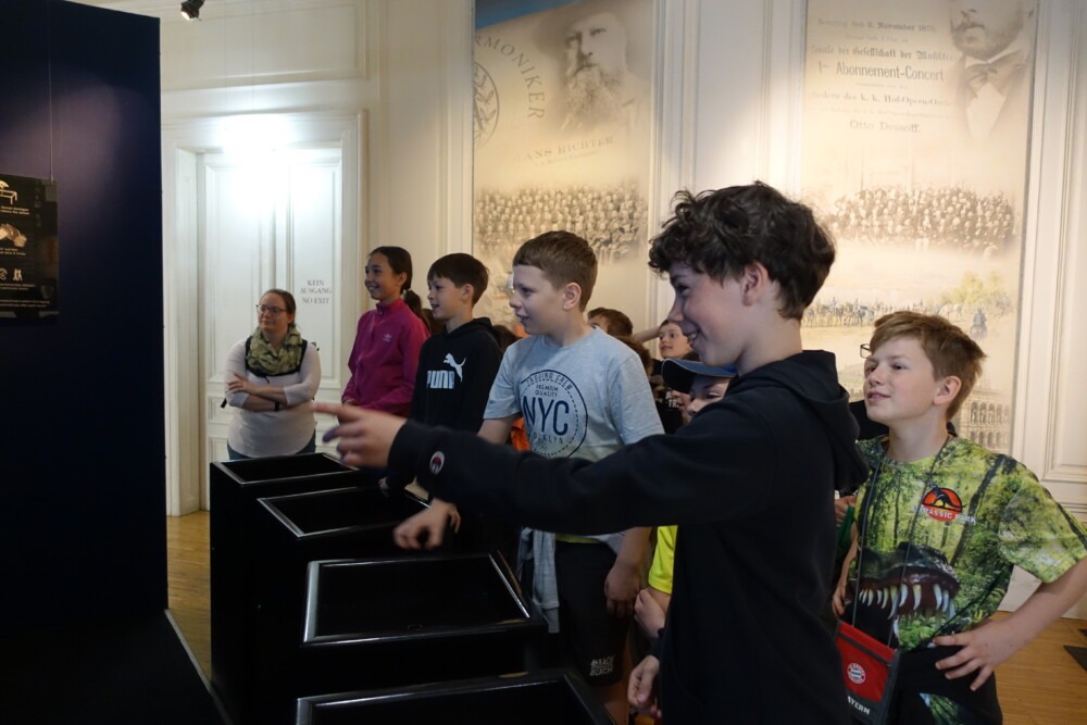 Am 2.5.2025 besuchte die 1. Klasse das Haus der Musik und tauchte ein in die Welt der Töne, Klänge und Geräusche. Viel Spaß machte das Walzer Würfeln und das Dirigieren der Wiener Philharmoniker. Elisabeth Göttinger und Birgit Gröss begleiteten die 1K bei der erlebnisreichen Exkursion.