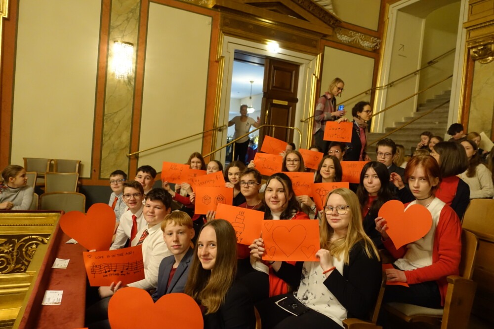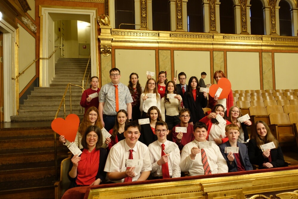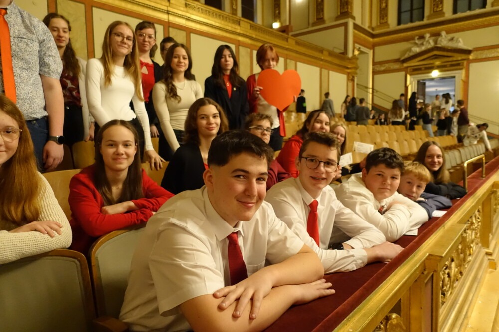 Unsere 4K besuchte mit Musiklehrerin Elisabeth Göttinger und Klassenvorständin Ingrid Riedl das Schulkonzert der Wiener Symphoniker. Im Goldenen Saal des Wiener Musikvereins genossen wir die Klänge des Streichorchesters zum Thema LOVE IS IN THE AIR.