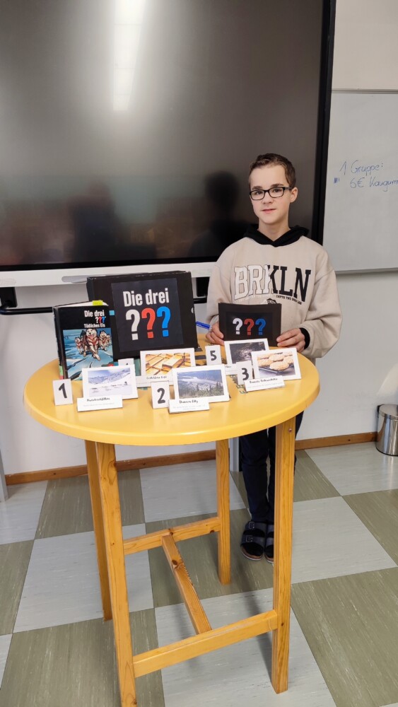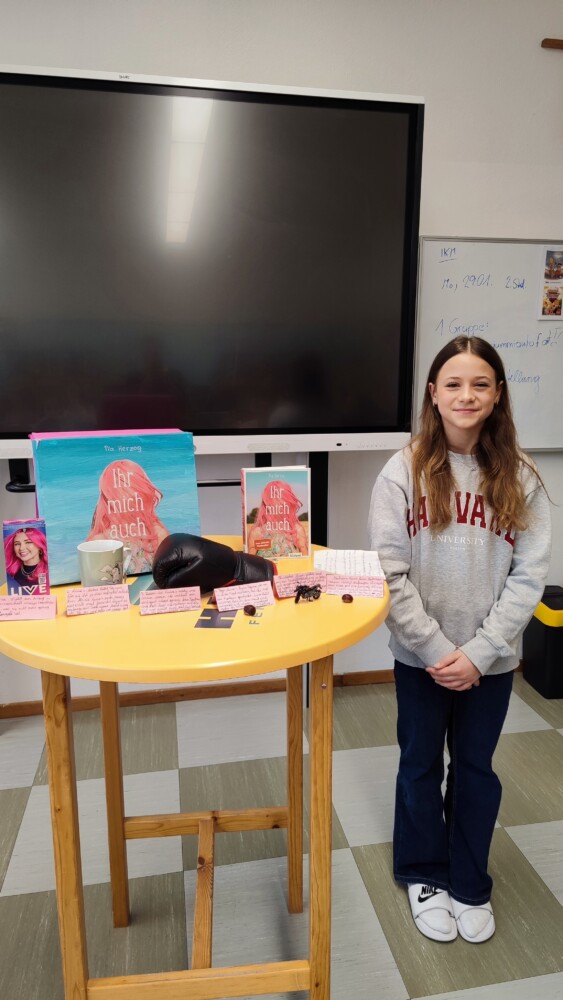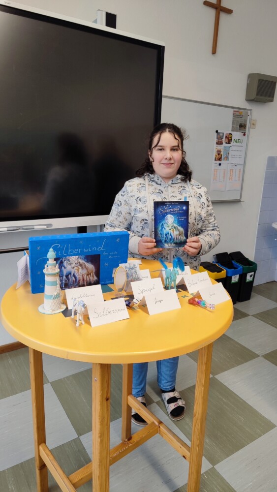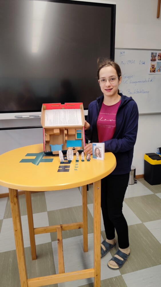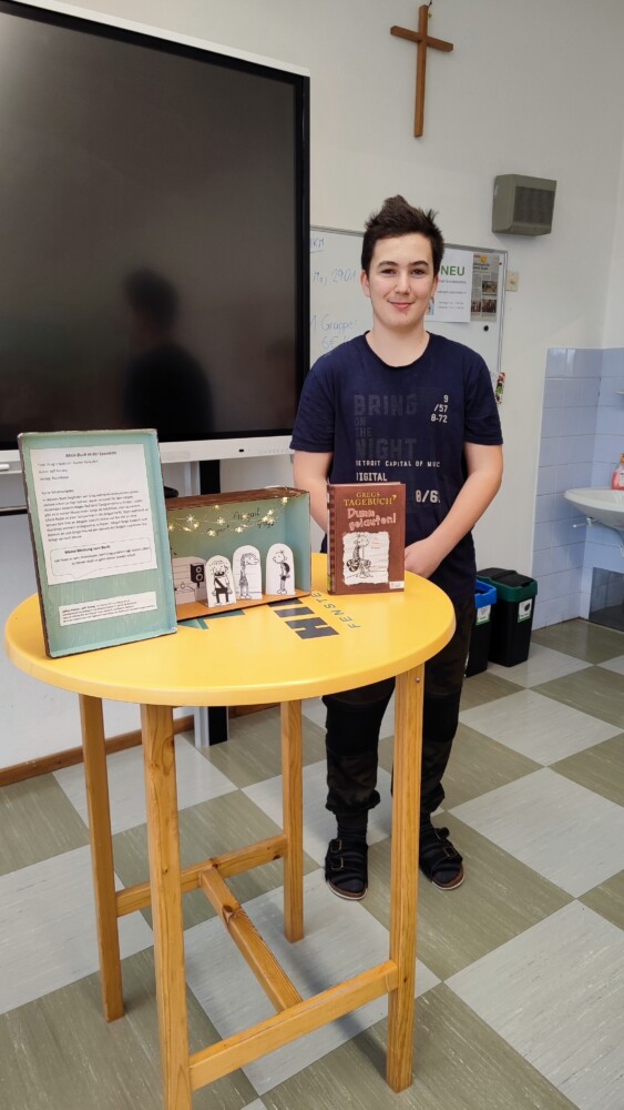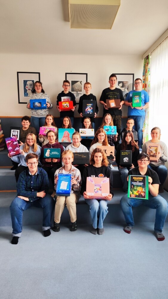 Besonders intensiv mit Büchern beschäftigte sich die 3. Klasse. Im Rahmen des Deutschunterrichts durften die Schülerinnen und Schüler eine eigene Lektüre wählen, welche sie in Form einer Leseschachtel präsentierten. Neben einer inhaltlichen Zusammenfassung der Lektüre, hatten die Lernenden die Aufgabe Gegenstände, die im Buch eine wichtige Rolle spielen, zu sammeln und in die Schachtel zu geben. Zudem wurden die Kisten in Kunst und Gestaltung zum Buch passend gestaltet.