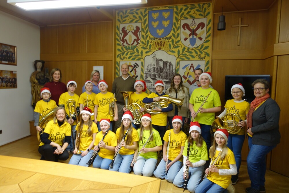 Heute Vormittag tourten Frau Direktor Mayrhofer und Elisabeth Göttinger gemeinsam mit Ihren Weihnachtsbläsern durch Raabs, besuchten beide Kindergärten, die Volksschule, die WAV, Herrn Bürgermeister Franz Fischer und sein Team am Gemeindeamt, musizierten am Hauptplatz und abschließend im Stadtkrug!