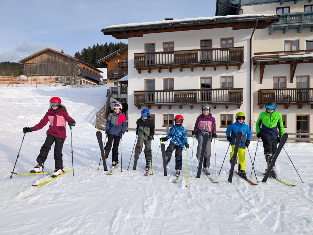 Um 6 Uhr war bereits Treffpunkt vor der Schule. Pünktlich fuhren wir Richtung Vitis und dann weiter Richtung Salzburg. Die Fahrt ist so gut verlaufen, dass wir schon um 12 Uhr am Ziel in Wagrain waren. Nach dem Mittagessen bezogen wir die Zimmer (und auch die Betten, was für viele noch sehr schwierig war) und lernten das Haus und die Umgebung kennen.